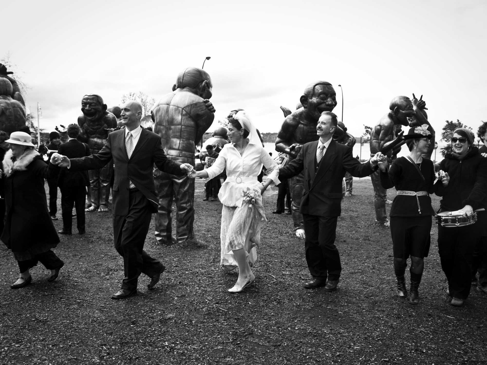 Our second annual Ederlezi, in 2011, featured Brass Menazeri from San Francisco, Orkestar Zirkonium from Seattle, and Orkestar Slivovica from Vancouver. Part of the performances included a day-time wedding re-enactment, where the bride and groom and their families were treated to a full day of touring Vancouver alongside 2 brass bands. Evening performances also included dancing by Gradina Folkdance Ensemble. These successful events were co-produced with Transformation Projects and Caravan World Rhythms.