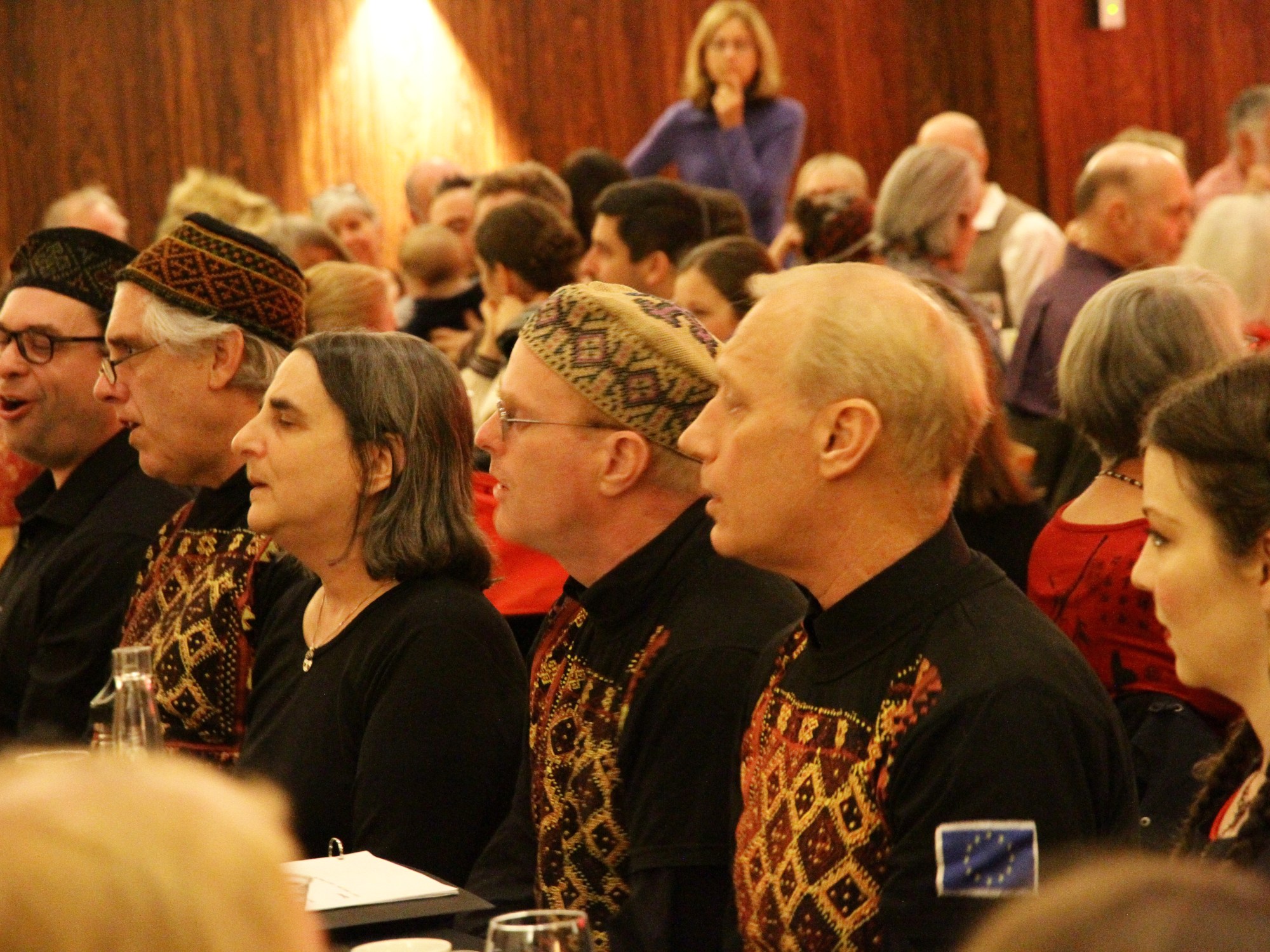 This event featured four groups from cultures that have a tradition of singing around a table while enjoying food and drink placed throughout the room. The music groups took turns in leading songs, a capella or with musical accompaniment.